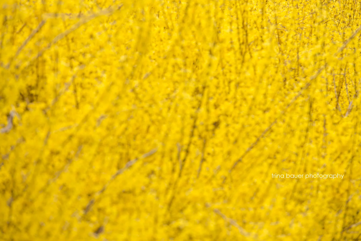 I thought this was a great challenge and have created several abstract images before. In autumn, falling leaves, windy days and fall colors make for some fun and interesting images. With the arrival of spring, we're starting to see some color after months of bleak, brown landscapes. Forsythia bushes in particular are showing off their pretty yellow flowers. I thought they would make for a great subject for this project. I fond a huge hedge, used my telephoto lens and manually focused until the flowers were out of focus in a sea of yellow.